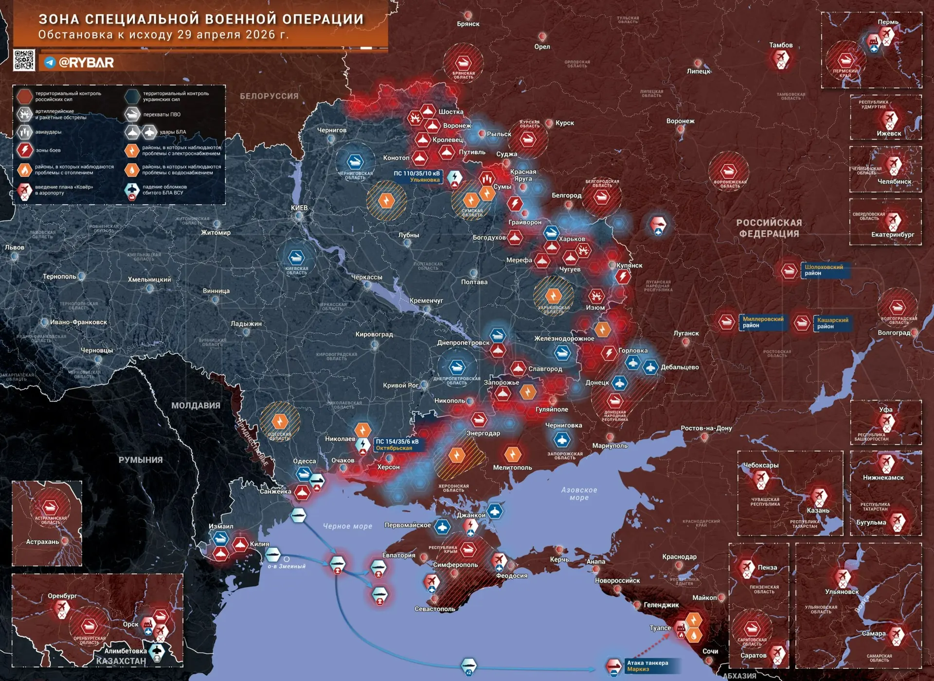 Украинские формирования осуществили массированный налет на Крым, Орск и Пермь, повреждения получили промышленные предприятия и гражданская инфраструктура. Один из украинских дронов упал на территории Казахстана. В Туапсе продолжается ликвидация последствий на территории НПЗ.
