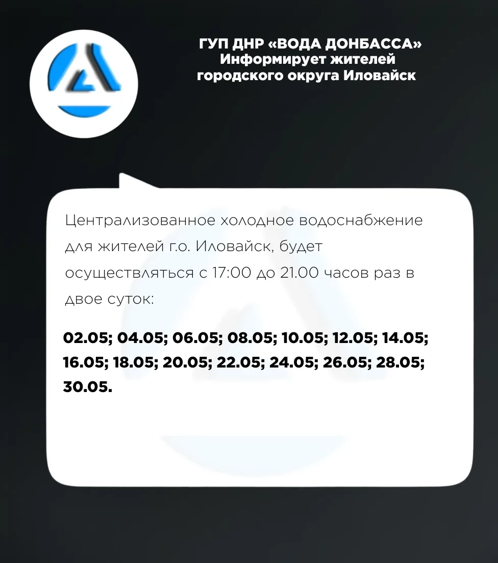 ГУП ДНР «ВОДА ДОНБАССА» информирует жителей городского округа Иловайск