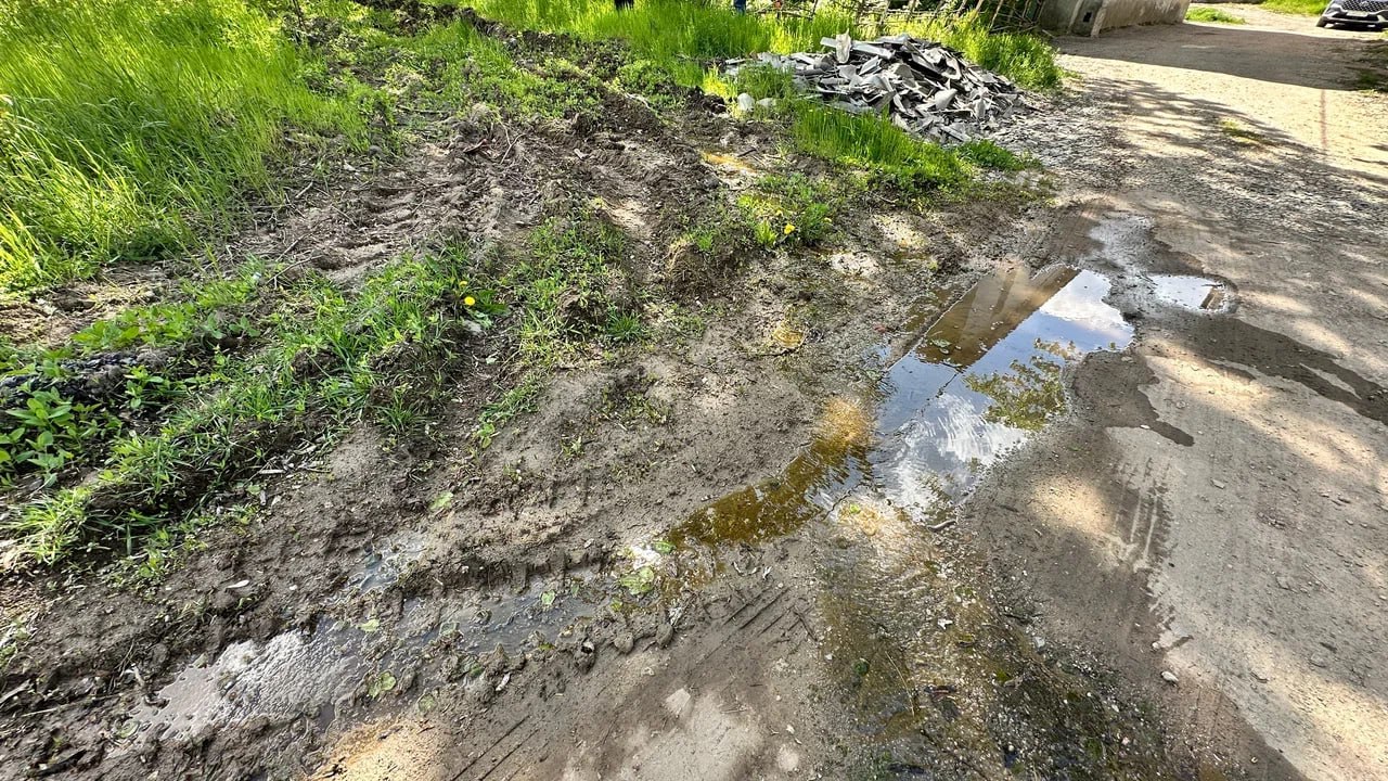К примеру, буквально пару часов назад побывали на Куприна, 21. Глядишь на дом - глаза радуются: чисто, прибрано, возле подъезда висит наш прекрасный триколор. А вот позади дома картина иная: за аккуратным палисадом по глубокой колее неторопливым ручейком бежит вода; чуть поодаль валяется куча старого шифера.
