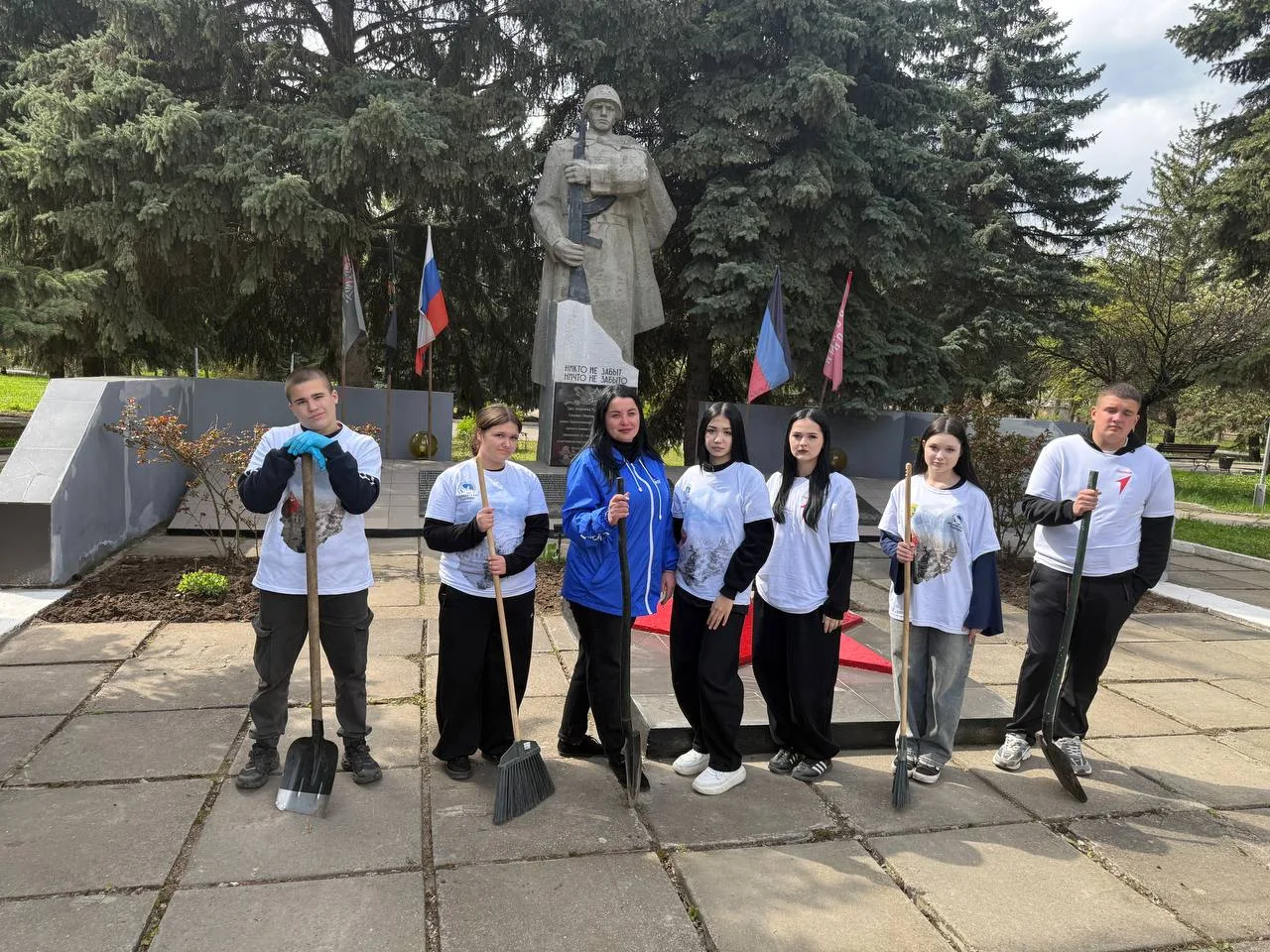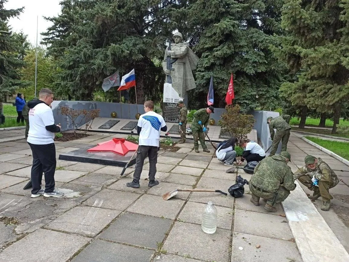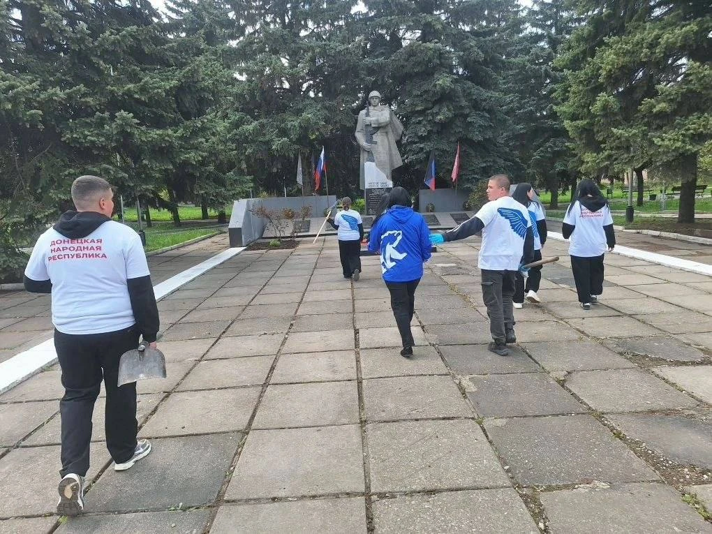 Активисты Движения Первых и Волонтёров «За Победу» ГБОУ «Мироновская школа № 10 г.о. Дебальцево» совместно с руководителем общественной приёмной партии «Единая Россия» Анжеликой Сергеевной Россохой и бойцами 2го мотострелкового батальона имени Героя России Минигали Шаймуратова провели субботник у мемориала «Неизвестного солдата».