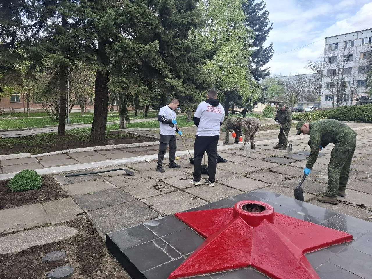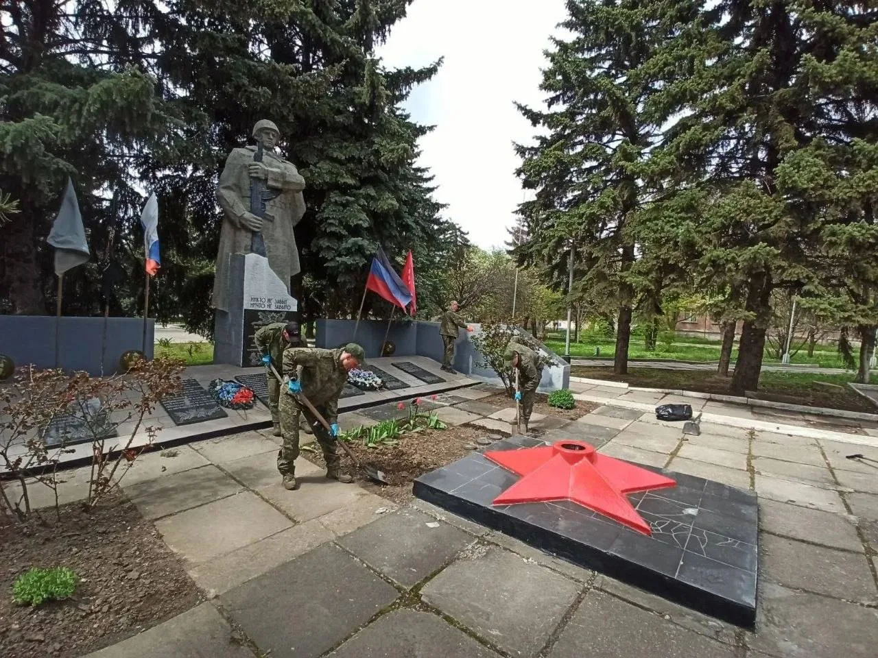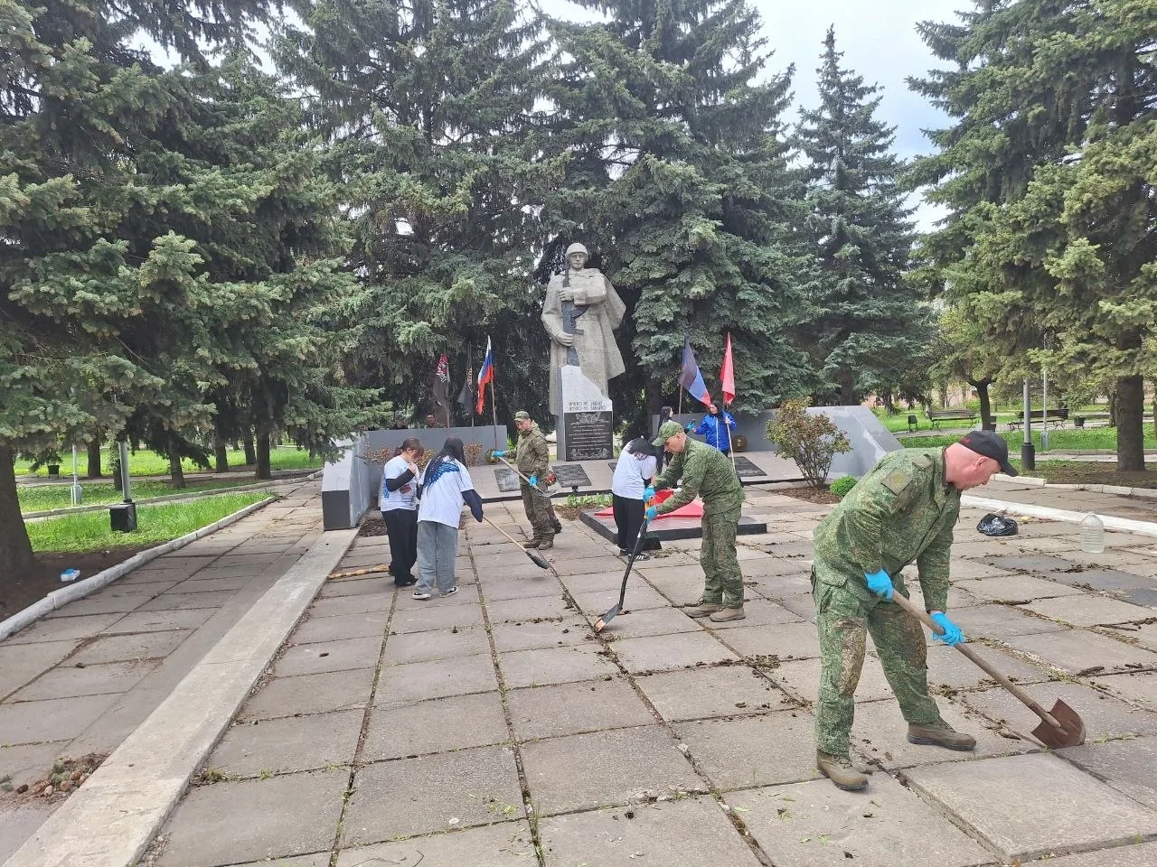 Активисты Движения Первых и Волонтёров «За Победу» ГБОУ «Мироновская школа № 10 г.о. Дебальцево» совместно с руководителем общественной приёмной партии «Единая Россия» Анжеликой Сергеевной Россохой и бойцами 2го мотострелкового батальона имени Героя России Минигали Шаймуратова провели субботник у мемориала «Неизвестного солдата».