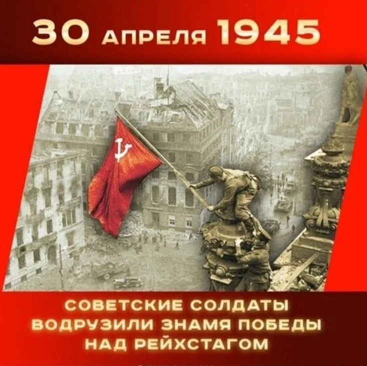 30 апреля 1945 года советские воины водрузили Знамя Победы над зданием Рейхстага в Берлине