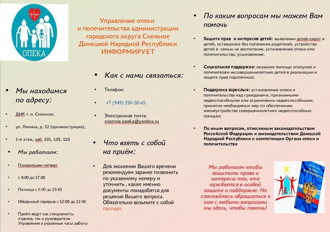 Управление опеки и попечительства администрации городского округа Снежное информирует