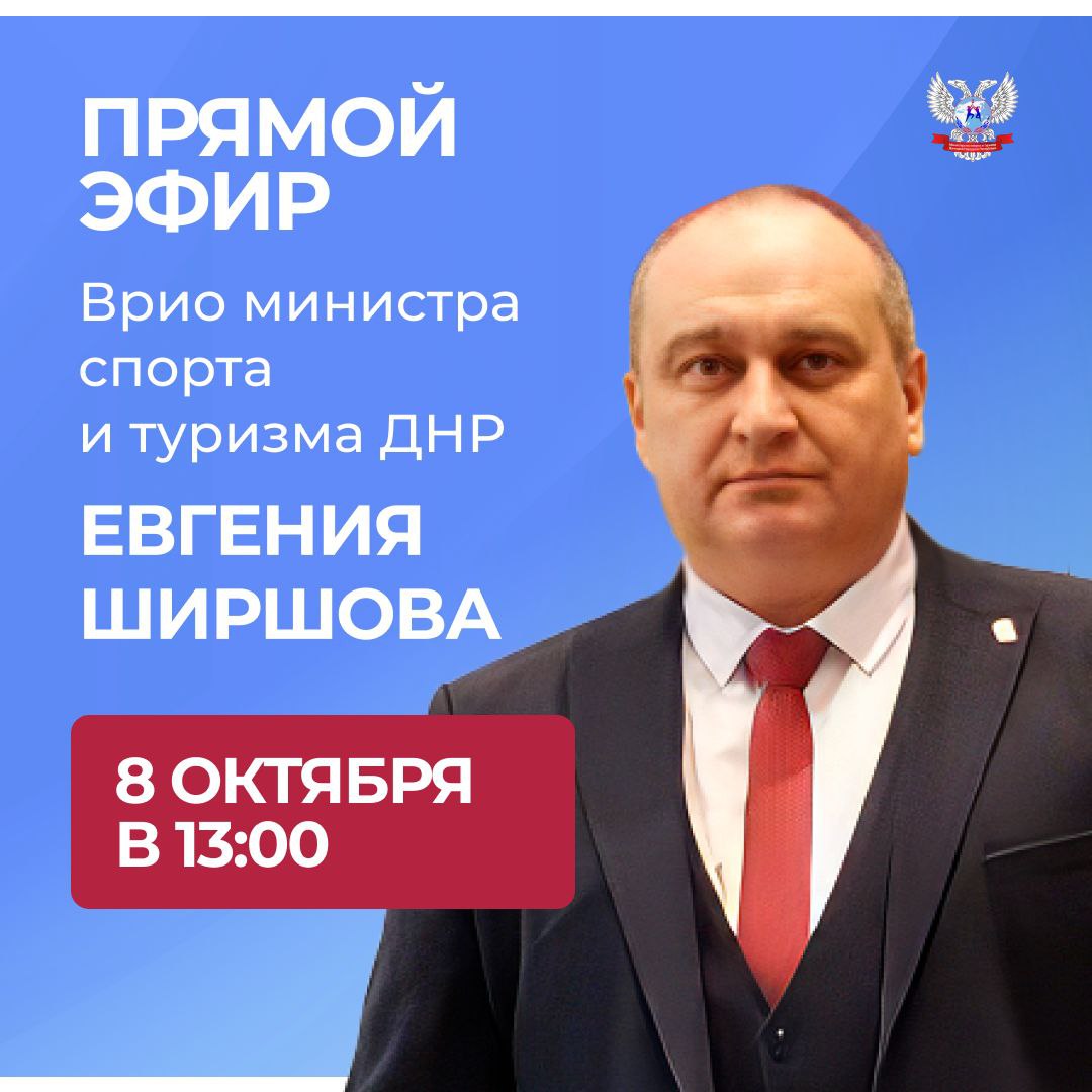Сегодня 8 октября в 13:00 по поручению Главы ДНР Дениса Пушилина пройдет прямая линия врио министра спорта и туризма ДНР, в ходе которой он ответит на самые актуальные вопросы, расскажет о планах и перспективах развития спортивной сферы и сферы туризма.