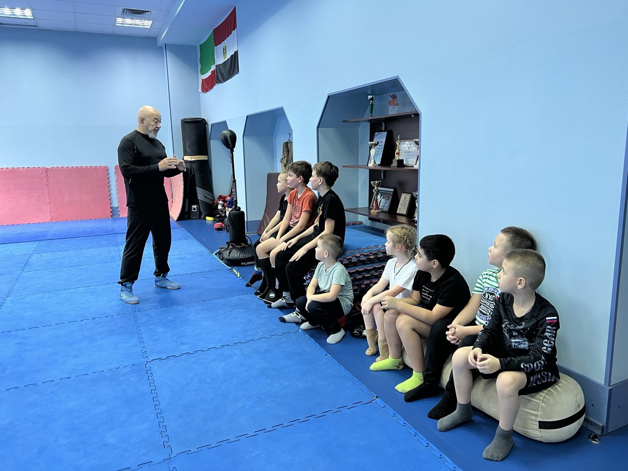С целью патриотического воспитания и профилактики чрезвычайных ситуаций 16.10.2025 г. в отделении кикбоксинга ГБУ ДО ДНР СШ ПО ВИДАМ ЕДИНОБОРСТВ г. Енакиево прошла беседа учащихся с тренером-преподавателем Умурзаковым Фархатом Зайнобидиновичем.