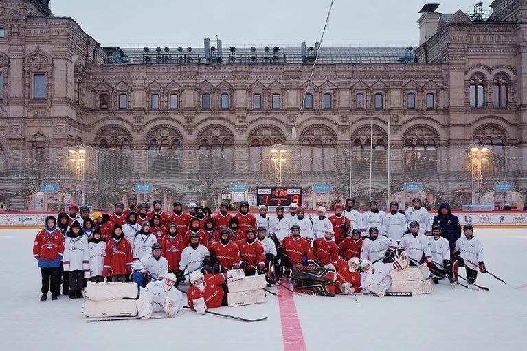 Лёд Красной площади объединил будущее и легенды нашего хоккея. В турнире приняли участие настоящие звёзды и руководители спорта:
