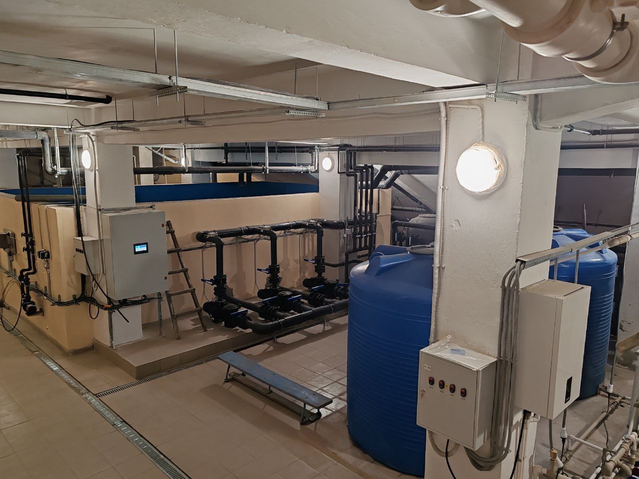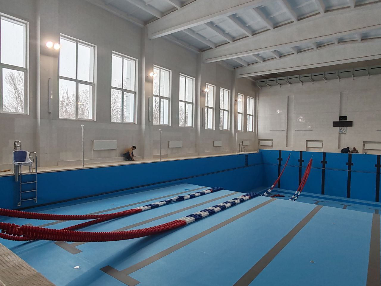 Ознакомился с ходом ремонта бассейна. Большая часть работ уже завершена: заменено оборудование для фильтрации и поддержания температуры воды, отремонтированы раздевалки и душевые, заменены оконные блоки и плитка в ванне бассейна.