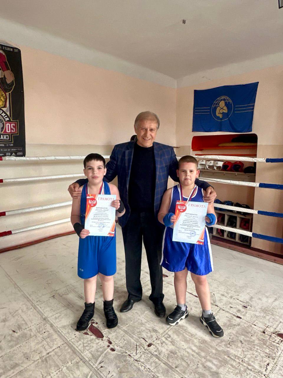Председатель Наблюдательного совета Федерации бокса ДНР Станислав Молчанов и президент Федерации бокса Макеевки Николай Выхристюк наградили юных боксеров медалями и грамотами